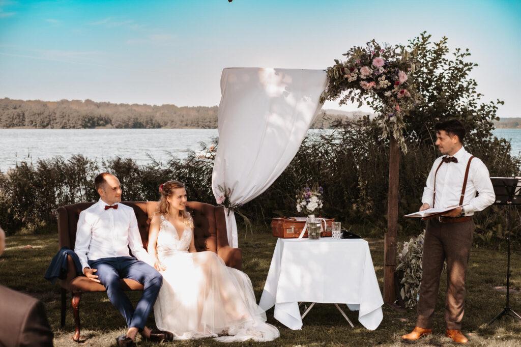 Besonders geeignet ist diese Form für Paare mit unterschiedlichen religiösen Hintergründen oder für alle, die ihre Hochzeit an einem besonderen Ort feiern möchten. Auch wenn eure Gäste eine moderne, kurzweilige Zeremonie erwarten, ist ein erfahrener Trauredner sinnvoll. Überraschungsmomente wie Zauberei können die emotionale Zeremonie später auflockern.